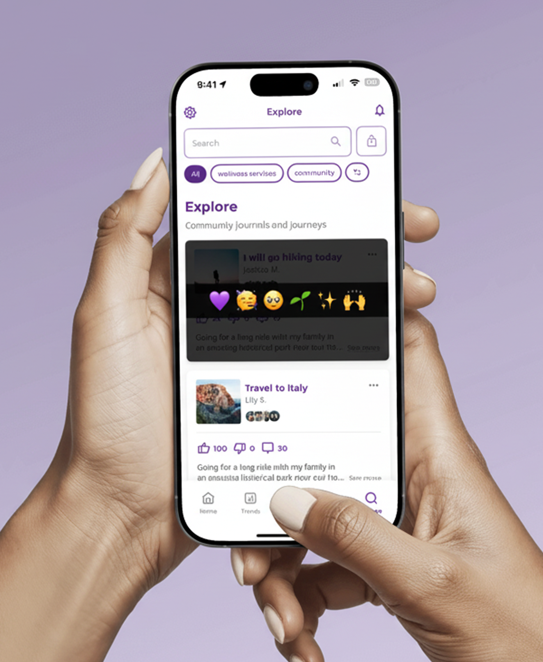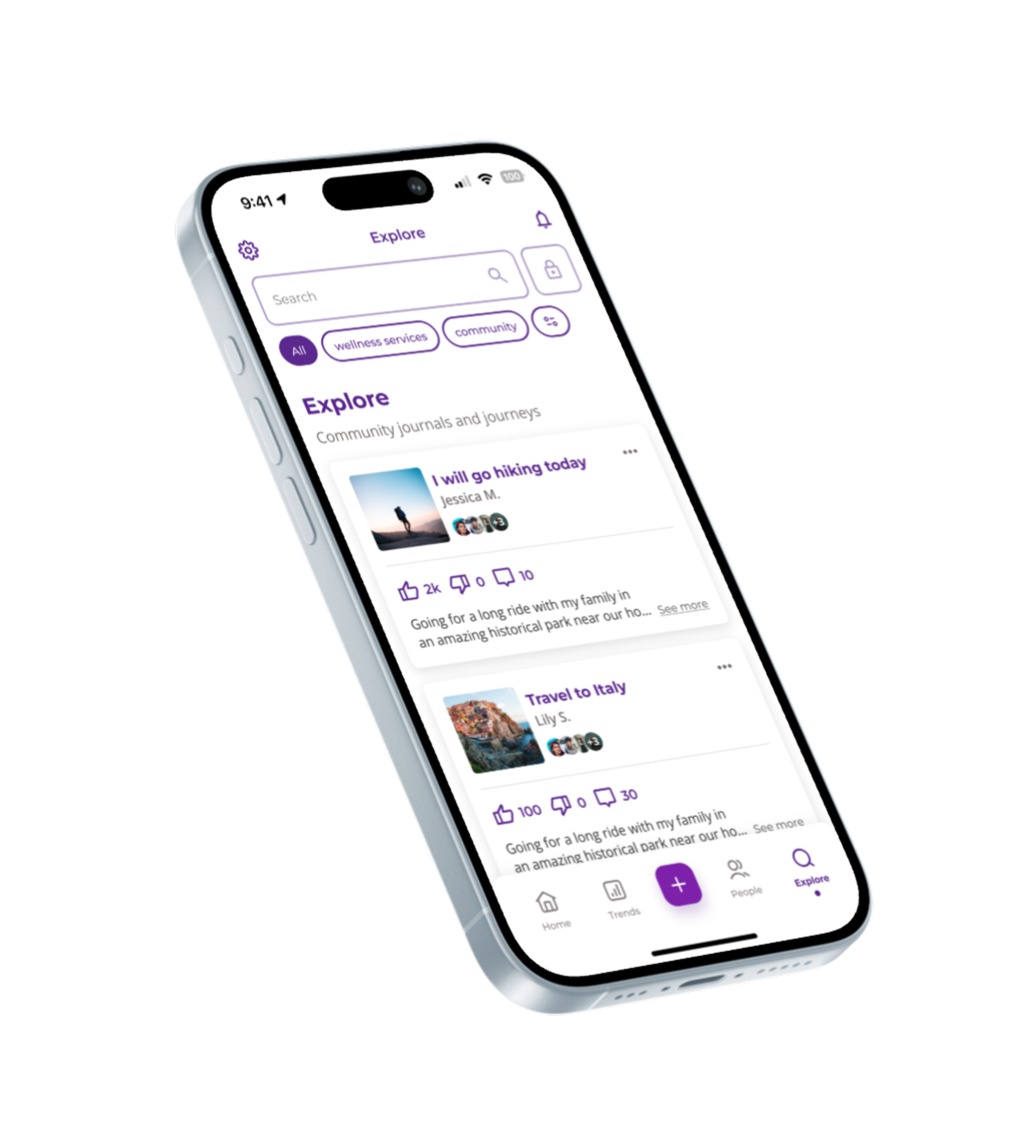 The Trends experience brings together activity, reflections, and engagement into a clear view of personal progress. Dashboards, streaks, and wellness insights help users recognize patterns, track growth, and stay motivated over time.