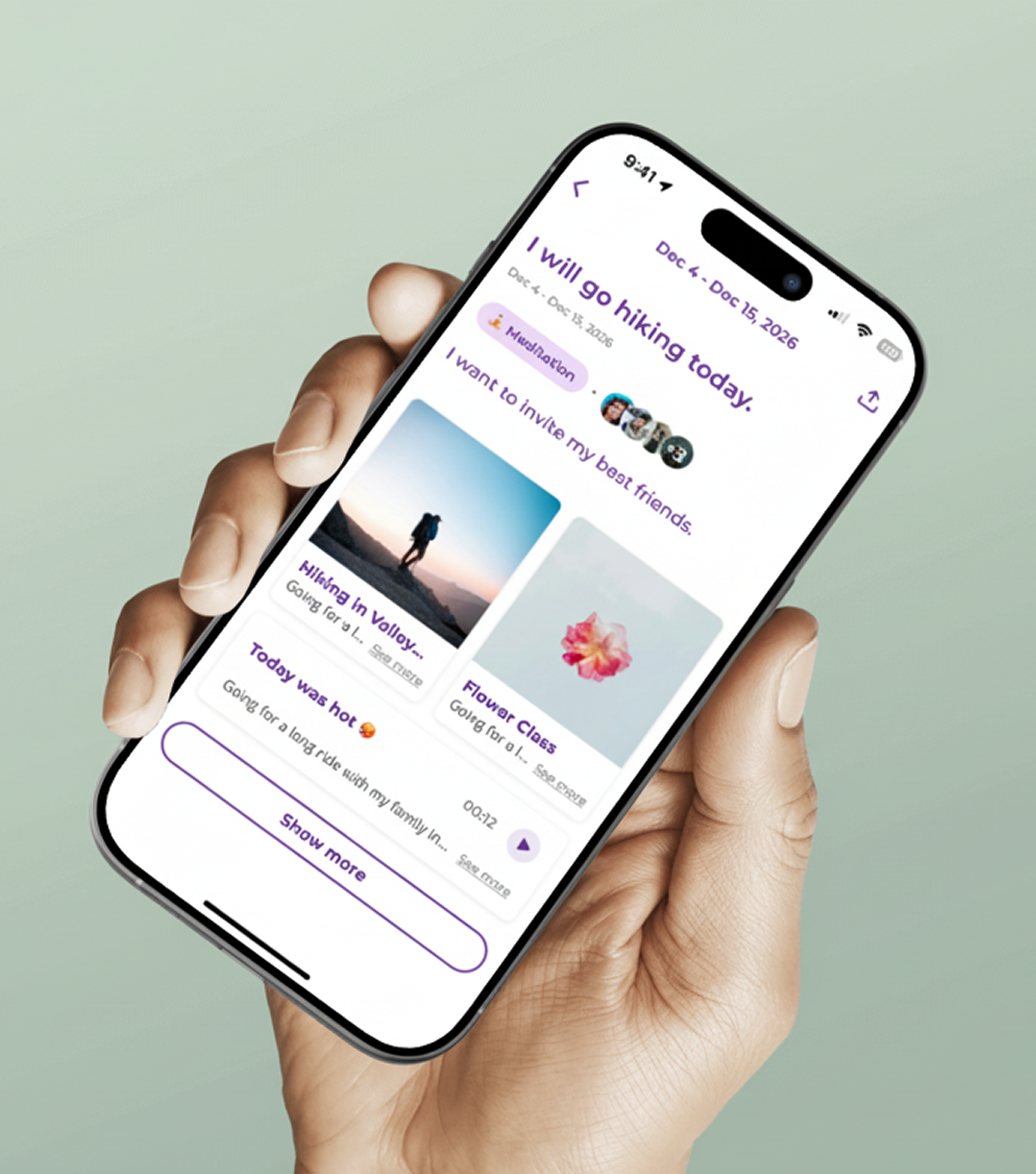 Journeys bring multiple reflections together across time. Instead of seeing isolated moments, users can see how experiences connect, evolve, and contribute to personal growth. Journeys help transform mindfulness activity into a meaningful wellness practice.